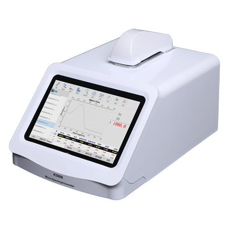 The K5600 K5600C micro-spectrophotometer, a new type full-spectrum(200~850nm) spectrophotometer, can measure nucleic acids, proteins, cell cultures, micro array samples, and UV-VIS full spectrum absorbance scan with high accuracy and reproducibility. Adding dark room for cuvette, you can choose cuvette or test platform.