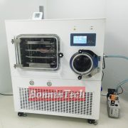 Freezing and drying process of LGJ-30F (Electric/silicon oil heating) are finished in the same place (patented product). It changes the cumbersome operation of the drying process in the past, prevents the contamination of materials, and realized dry sublimation automatically. The model is equipped with shelf heating and has programmable functions. It can memorize freeze-dried curves and comes with u-disc extraction function for users to observe the lyophilization process of materials.