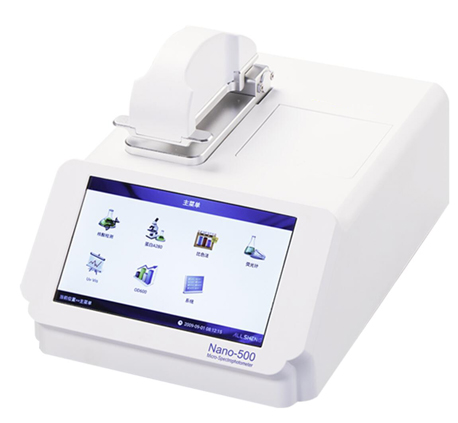 The Nano-500 is an advanced model of Micro UV VIS Spectrophotometer based on Nano-300, with full range of wavelength (200-800nm). It is with an added new function of bacterium cell concentration measurement (OD600) in a cuvette. The Nano-500 only requires 0.5-2ul sample to measure nucleic acids, protein as quickly like Nano-300 do. Nano-500 come with a 7 inch touch screen and integranted Android operating system, with no computer required. It is an ideal equipment for a biology laboratory to make life science research more efficient.