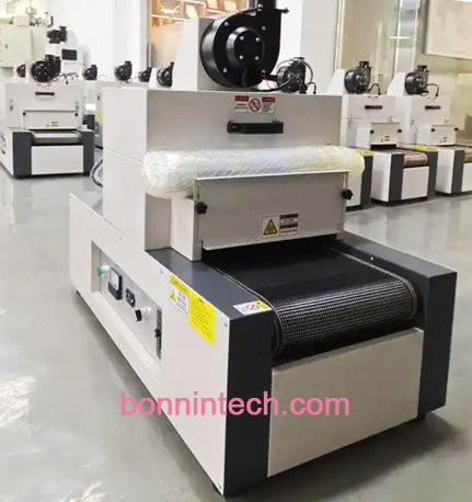 The UV-3002 UV curing machine is a device that uses a UV light source to cure UV coatings, chemically reacts with the photosensitizer in the UV coatings, and instantly dries and cures. The application of uv curing furnace in the ink printing industry is very common. Both screen printing and offset printing will use uv curing furnace to dry the surface of uv ink.